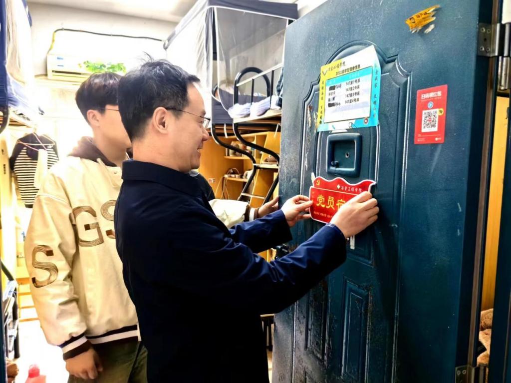 路壮志一行与学生党员进行了深入交流,关心、了解学生的日常学习生活,勉励学生党员应主动亮明身份,以身作则,在宿舍发挥示范引领作用,带动其他同学提升自我管理能力;勉励非党员同学既要向党员看齐,同时也要发挥监督作用,共同营造健康文明、积极向上的校园宿舍文化。