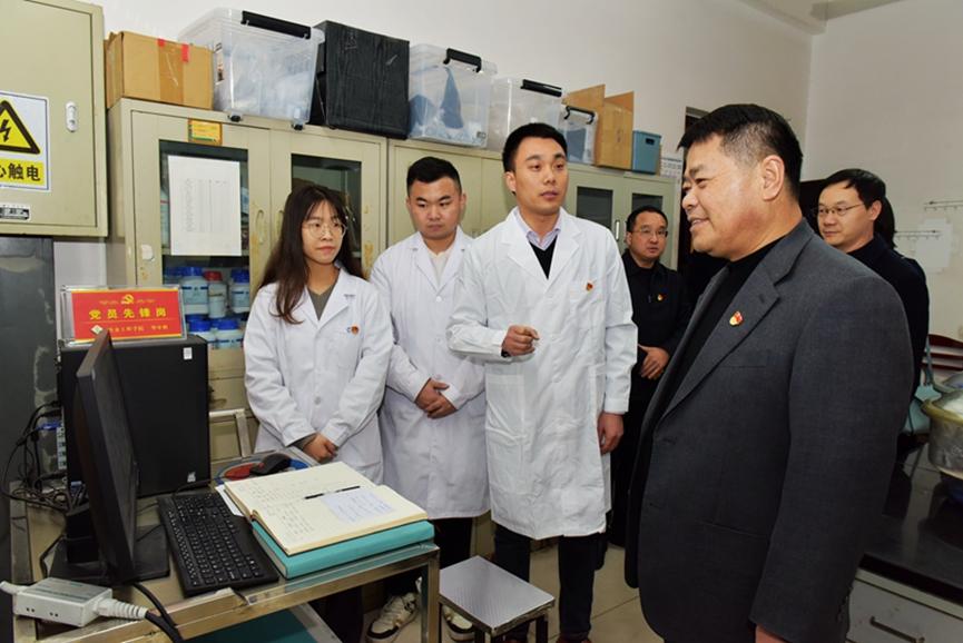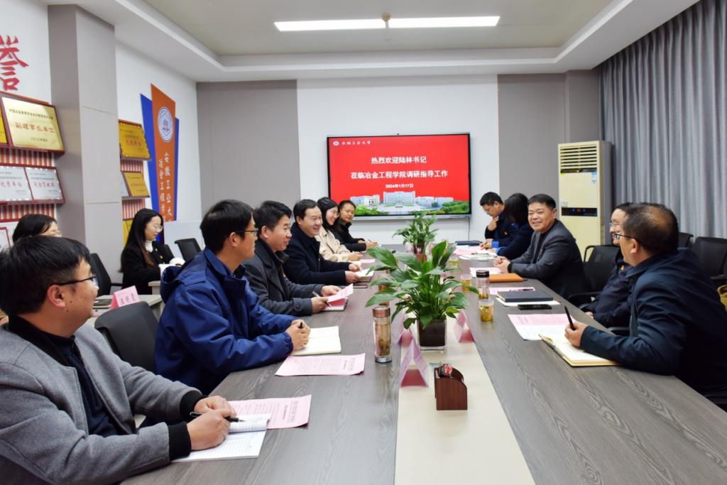 陆林书记首先考察了有色金属冶金系战略金属党员先锋攻关创新团队实验室,深入了解团队在镓、锂、铍、铼及铂族金属等战略金属方面的关键技术和产品攻关情况,鼓励团队成员充分发挥党员的先锋模范作用,积极面向国家重大战略需求开展创新性研究,力争突破当前该领域的卡脖子难题,在强国建设、民族复兴伟业中展现工大人的使命担当。