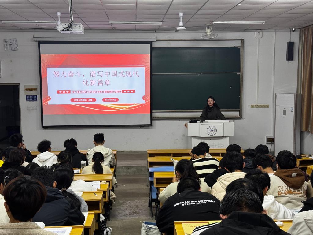 为深入学习贯彻习近平总书记考察安徽重要讲话精神,11月25日,校第五届辅导员宣讲团成员王倩开展学习习近平总书记考察安徽重要讲话精神宣讲,欧美色情片 2024级新生团员参加了此次宣讲。