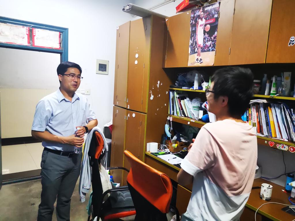 辅导员一行,走访学院毕业班学生宿舍,了解毕业生就业情况。