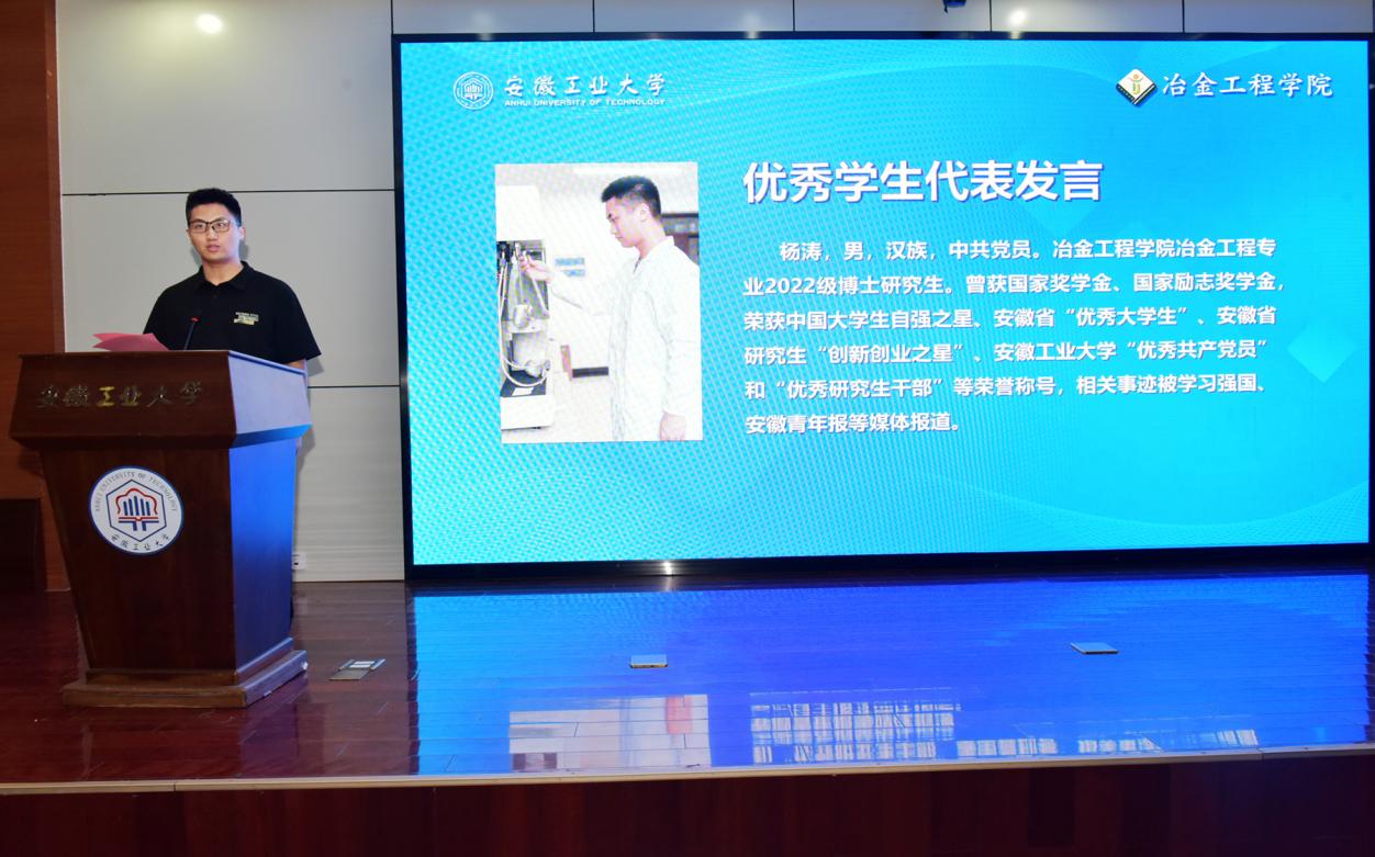 第十六届“钢之家”大学生科技文化艺术节活动实施方案》,勉励同学们把握机遇,在学科交叉创新中突破思维边界,在专业融合实践中锻造核心竞争力。中国大学生自强之星获得者、2022级博士研究生杨涛作为优秀学生代表作交流发言,号召同学们用求知的硬度锤炼智慧,以求真的纯度淬炼匠心,以创新的锐度开拓未来。