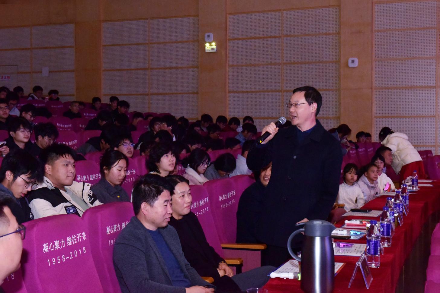 中场互动“飞花令”别具匠心,学院党委书记路壮志老师、副院长(主持行政工作)张立强老师融合学院专业特色,分别以“金属”“钢铁”为题出令,现场同学们踊跃抢答,妙语连珠,既有“金戈铁马,气吞万里如虎”的豪情,也有“百炼成钢终不悔”的志向,充分展现了冶金学子扎实的人文素养与专业认同感,赢得现场观众的阵阵掌声。