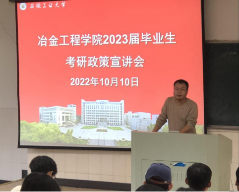 于10月10日下午在阶教103教室举办2023届毕业生考研政策宣讲会。会议邀请校研究生院招生办孙琳老师进行政策宣讲,院党委副书记副院长杨建、毕业班辅导员和全体2023届毕业生参加本次宣讲会。