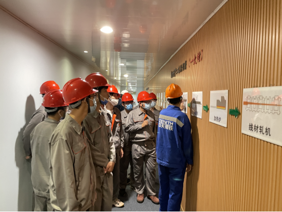 实践队师生在接受企业进行安全教育培训后,分别参观学习了中天钢铁集团第二烧结厂、热电厂、第二炼铁厂、第三轧钢厂、第三炼钢厂等生产厂,了解了烧结厂、热电厂、炼铁厂等厂区设备,熟悉了料场物料转运、配料工艺、物料辨识、石灰窑工艺、炼铁工艺、高炉本体系统、高炉辅助系统、转炉、精炼连铸工艺、轧钢工艺等。