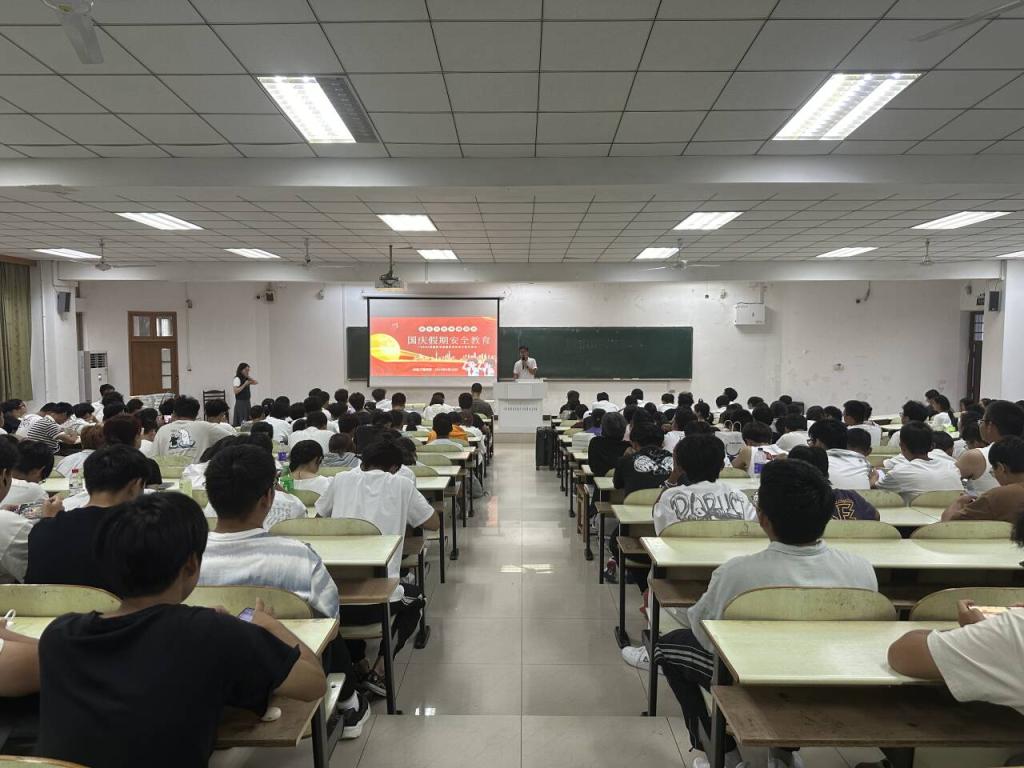 于佳山校区教三南103教室召开2024级新生国庆假期安全教育专题年级会。2024级辅导员孙晨担任主讲,全体新生参加了此次活动。