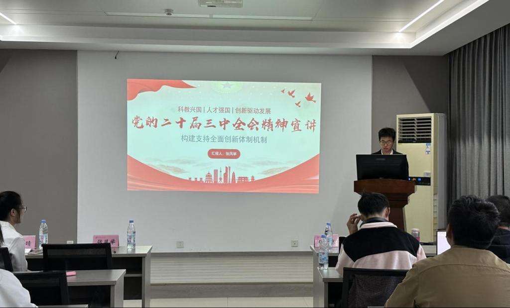 王雨晴以“高擎改革旗帜作答时代问题——进一步全面深化改革的重大意义”为主题,从回望过去,思考现在,展望未来三部分进行宣讲。随后,强雪寒以“‘数’说全会”为主题,从科技层面进一步解读党的二十届三中全会精神,将全会精神与数据科技紧密联系起来。最后,张凤举以“构建支持全面创新体制机制”为主题,结合欧美色情片