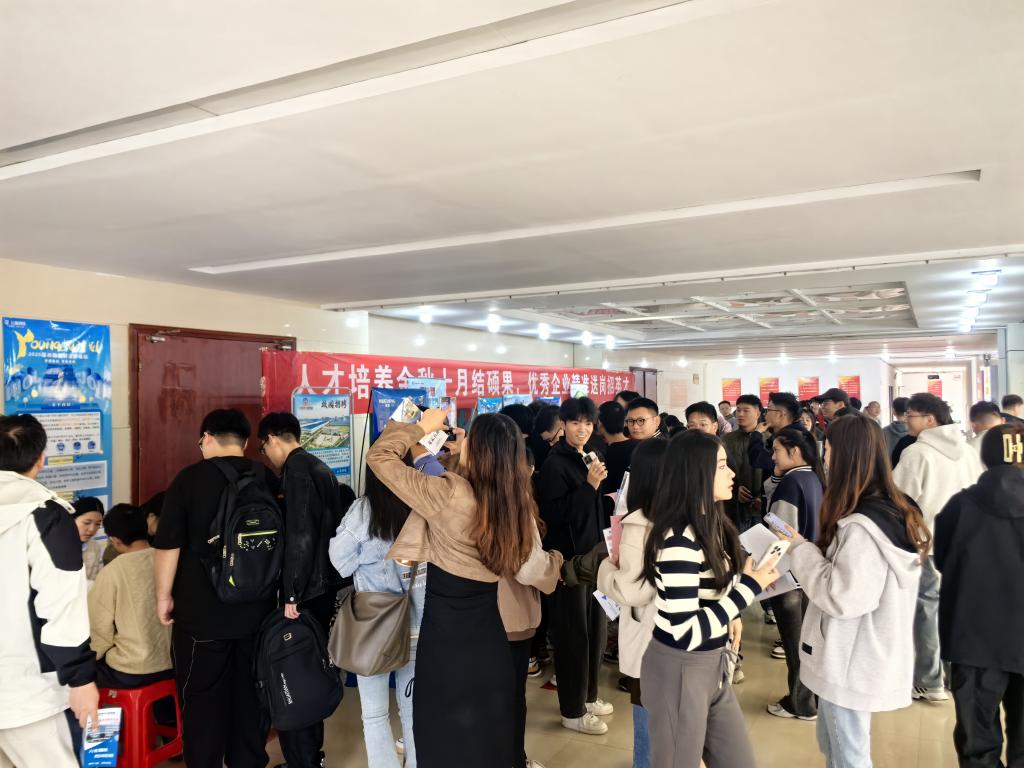 负责人与前来求职的学生亲切交谈,询问他们的求职意向、职业规划以及现实困难,鼓励学生保持积极乐观的心态,面对就业市场的挑战。现场人头攒动,气氛浓烈,应聘毕业生手持精心准备的自荐求职材料,积极与招聘单位沟通交流,主动了解用人单位及岗位需求情况。