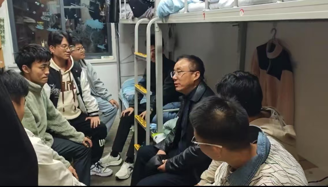 老师走进宿舍关心我们的学习生活,为我们答疑解惑,令大家非常感动,我们将牢记老师嘱托,树立明确目标,共创优良学风,努力做到不负青春、学有所成,成长为有担当、有本领的高素质人才。