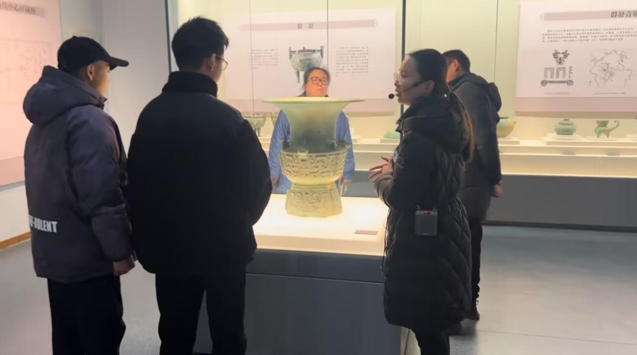 在安徽铜陵,实践队员前往了铜陵博物馆,恢弘大气的铜幕墙和丰富的铜文化历史展品深深吸引了队员们。场景再现、文物佐证、图文解说等多元化展示,彰显了铜陵作为“千年古铜都,当代铜基地”在中国青铜文明中的重要地位以及铜文化的巨大魅力。