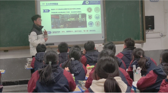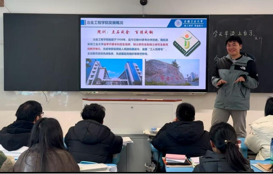 1月13日至15日,我校“我把工大带回家乡”百支爱校荣校实践团六安分队赴六安市毛坦厂中学进行宣讲。宣讲团成员张友志同学结合自身在工大的学习生活体验,讲述了成长故事,为同学们播放了宣传视频,激起了同学们浓厚的兴趣。