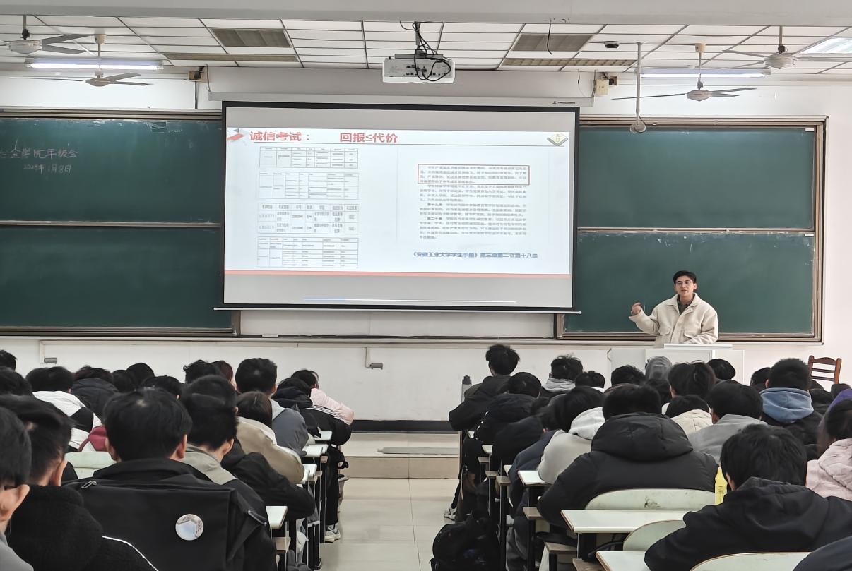 于佳山校区教三南201、301教室召开2024级学生诚信考试动员会,会议由2024级辅导员孙晨、王倩主持,2024级全体学生参加了会议。