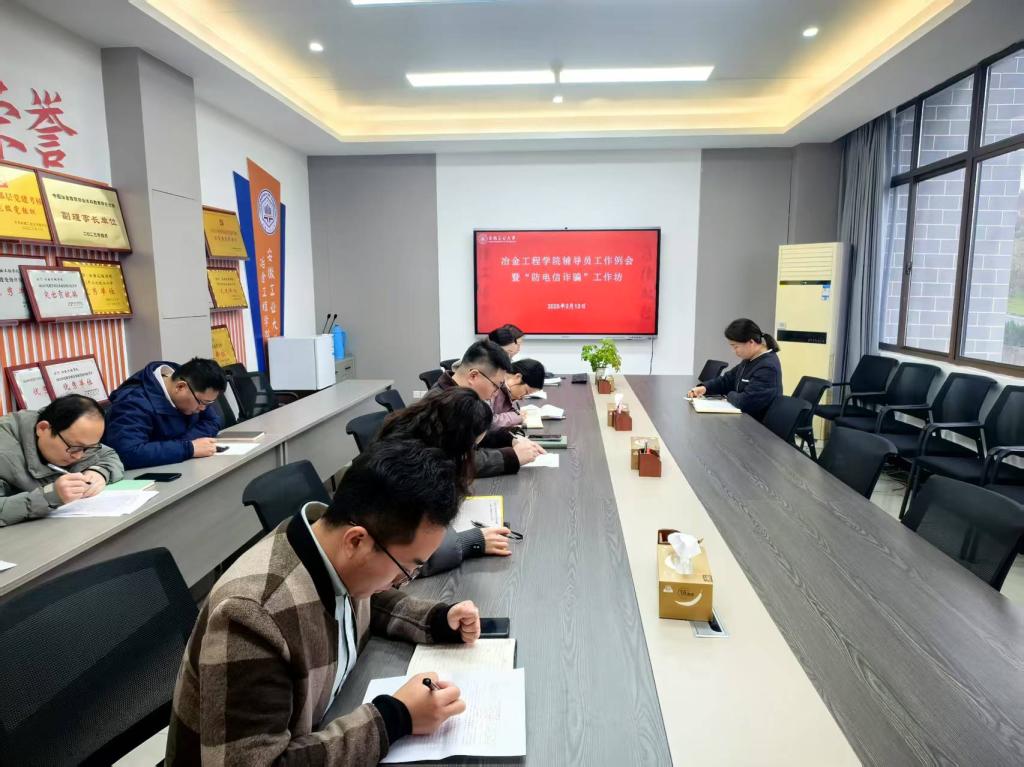 于秀山校区冶金楼南324会议室召开辅导员工作例会暨“防电信诈骗”工作坊。院党委副书记、纪委书记、副院长朱艳飞和全体辅导员参加了此次会议,会议由朱艳飞主持。