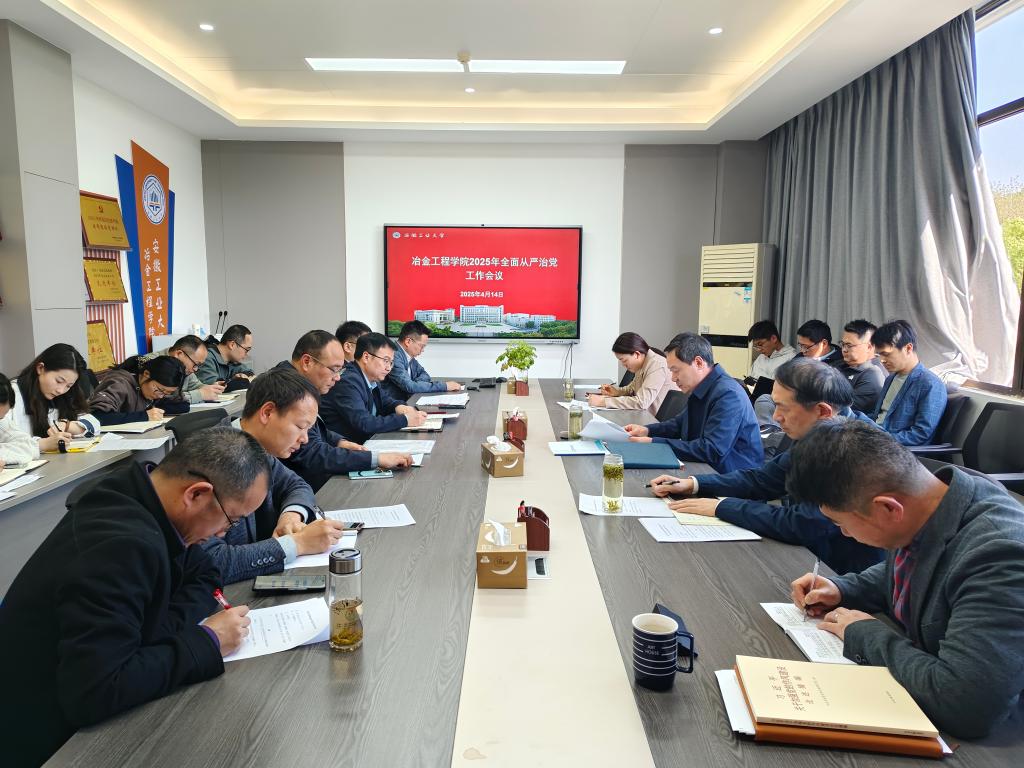 于秀山校区冶金楼南324会议室召开2025年全面从严治党工作会议。院领导、党委委员、纪委委员、院长助理、工会主席、办公室主任、党委秘书、党支部书记、系(室、中心)主任、全体辅导员参加了会议。会议由院党委书记路壮志主持。