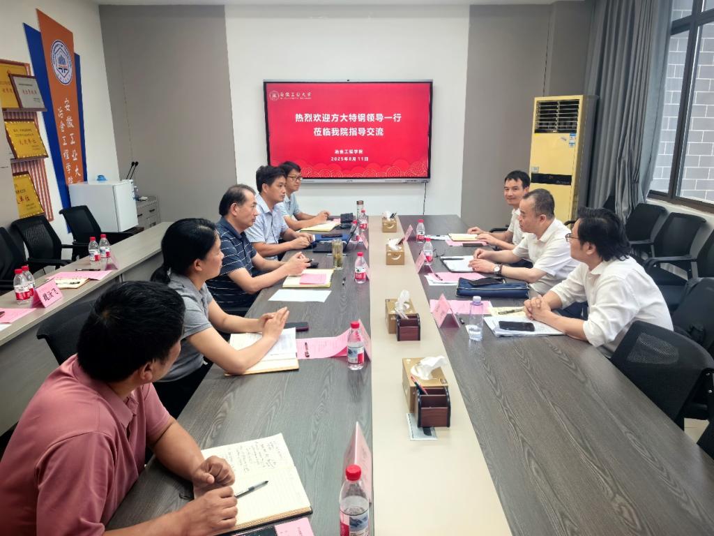 8月11日下午,方大特钢科技股份有限公司党委副书记邓斌、技术中心副主任陈明、人力资源部综合配置科科长罗嗣国一行来校开展校企合作交流。研究生院(研究生工作部)常务副院长(部长)、学科建设处处长、欧美色情片