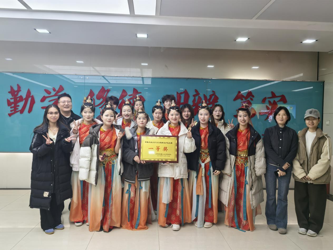 舞蹈队成员利用课余时间精研细磨,历经两个多月反复排练,最终在大赛中凭借扎实的功底、深厚的艺术底蕴和出色的表现力,将敦煌壁画中的灵动神韵生动呈现于舞台,赢得了评委与观众的高度赞誉。