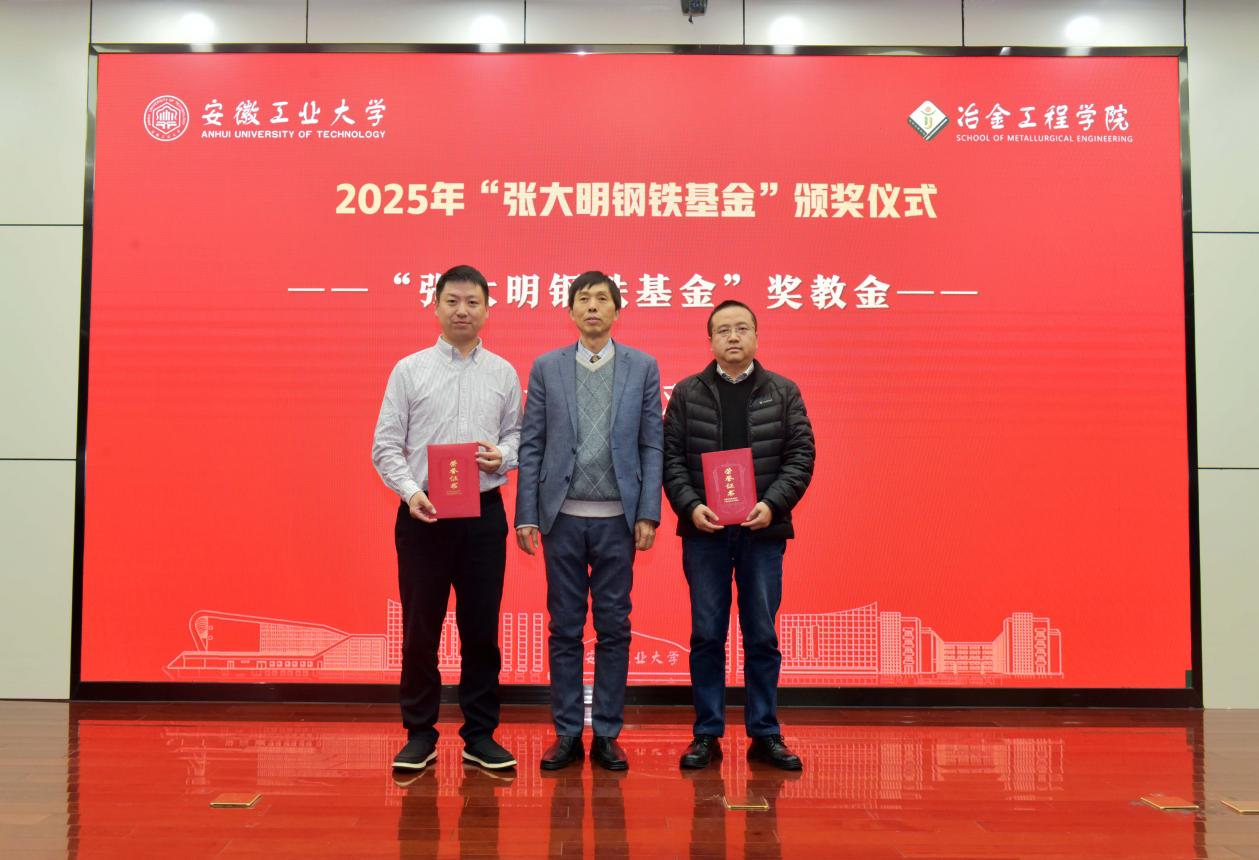 会上,学院党委书记路壮志宣读2025年度“张大明钢铁基金”获奖名单。材料成型及控制工程系夏文真老师、冶241班宋泽焘同学分别作为获奖教师和学生代表发言。郑利平为张大明校友颁发了兼职教授聘书及“关心下一代工作先进个人”荣誉证书,张大明为获奖师生颁发了荣誉证书。