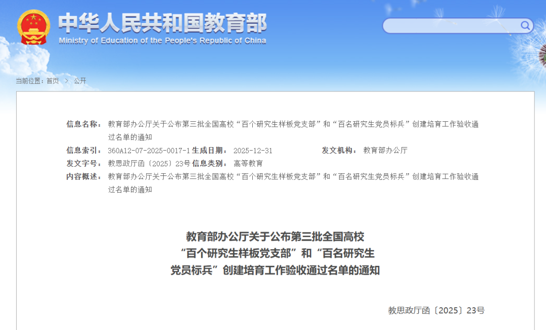 近日,教育部公布了第三批全国高校“百个研究生样板党支部”和“百名研究生党员标兵”创建培育工作验收结果。经过两年的创建培育,学校评估总结、省级党委教育工作部门把关审核、教育部学位与研究生教育发展中心审查及相关司局综合评定,欧美色情片