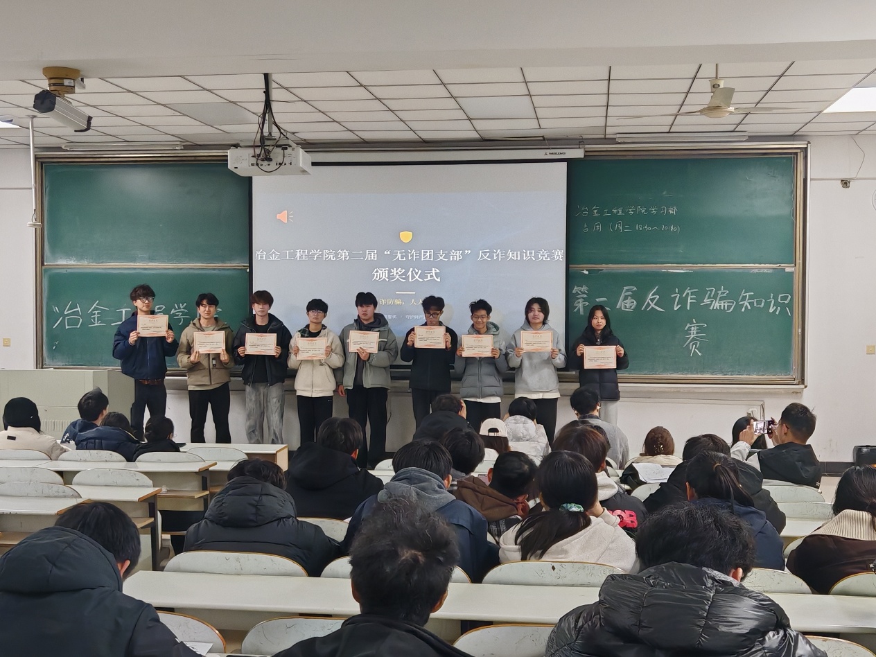 本次竞赛紧密结合校园高发诈骗类型,围绕“刷单返利”“冒充客服”“校园贷”“游戏交易诈骗”等典型案例,设置情景分析、知识抢答、风险辨识等环节。参赛队员沉着应对、逻辑清晰,精准剖析诈骗套路,提出有效防范策略。现场观众积极参与互动问答,在交流中深化对反诈知识的理解,学习氛围浓厚。经过激烈角逐,活动共评选出6名优秀个人及3支“无诈团支部”优胜团队,并现场颁发荣誉证书。