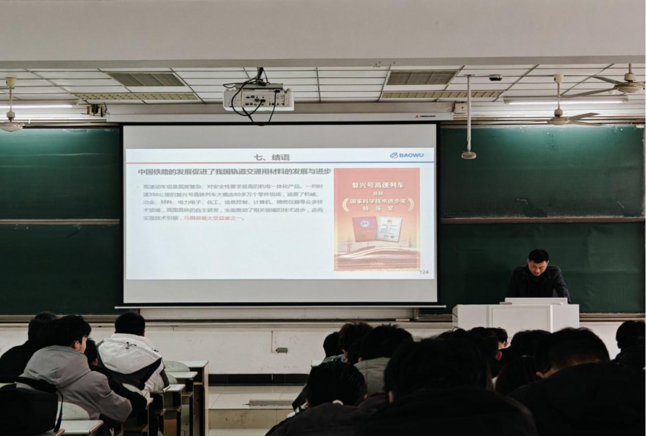 3月17日,宝武集团马钢轨交材料科技股份有限公司首席研究员、正高级工程师赵海应邀到欧美色情片作学术报告。材料成型系夏文真老师主持报告会,欧美色情片 材料成型及控制工程专业2024级全体新生聆听了报告会。