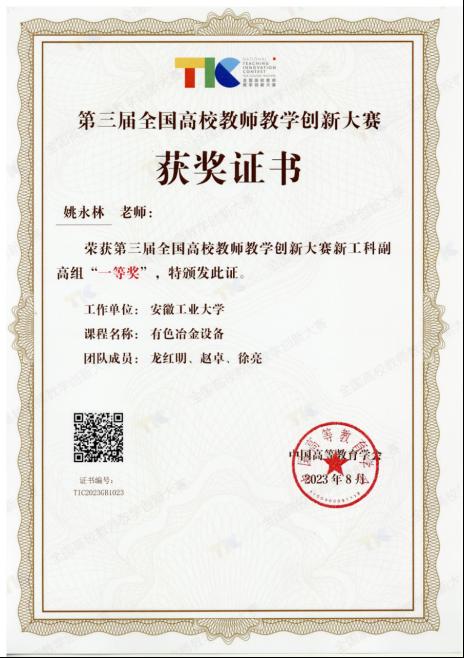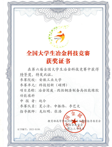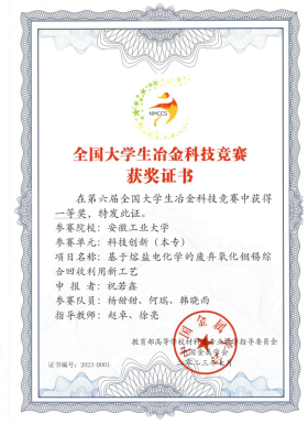 图6全国大学生冶金科技竞赛特等奖