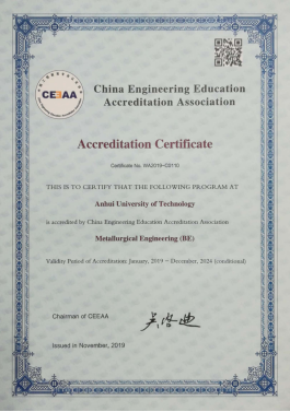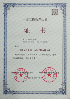 图2冶金工程工程教育认证证书